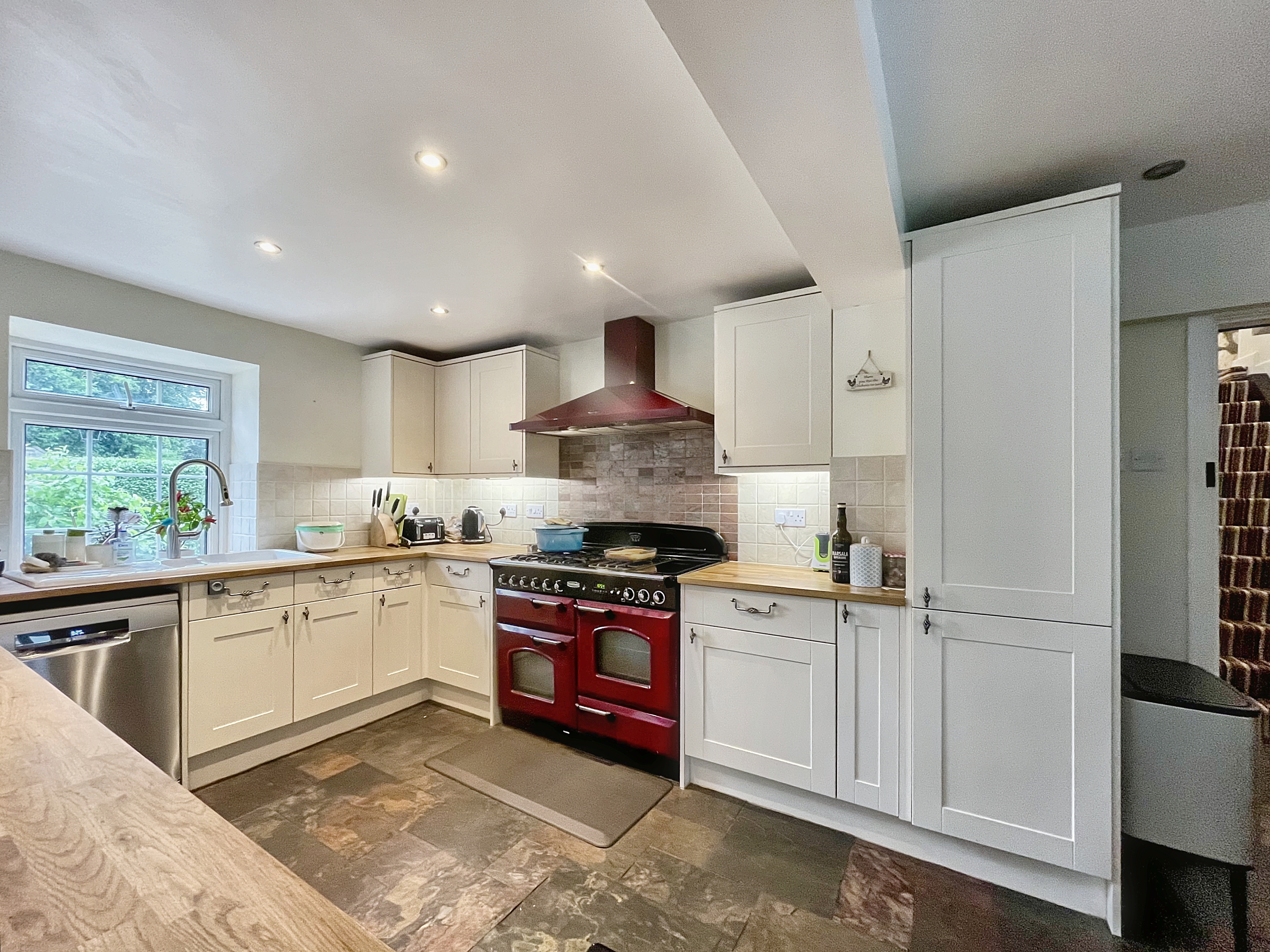 Outside showcases a gorgeous cottage garden with secluded spaces and seating areas as well as parking for two/three cars and an electric car charging point for convenience.