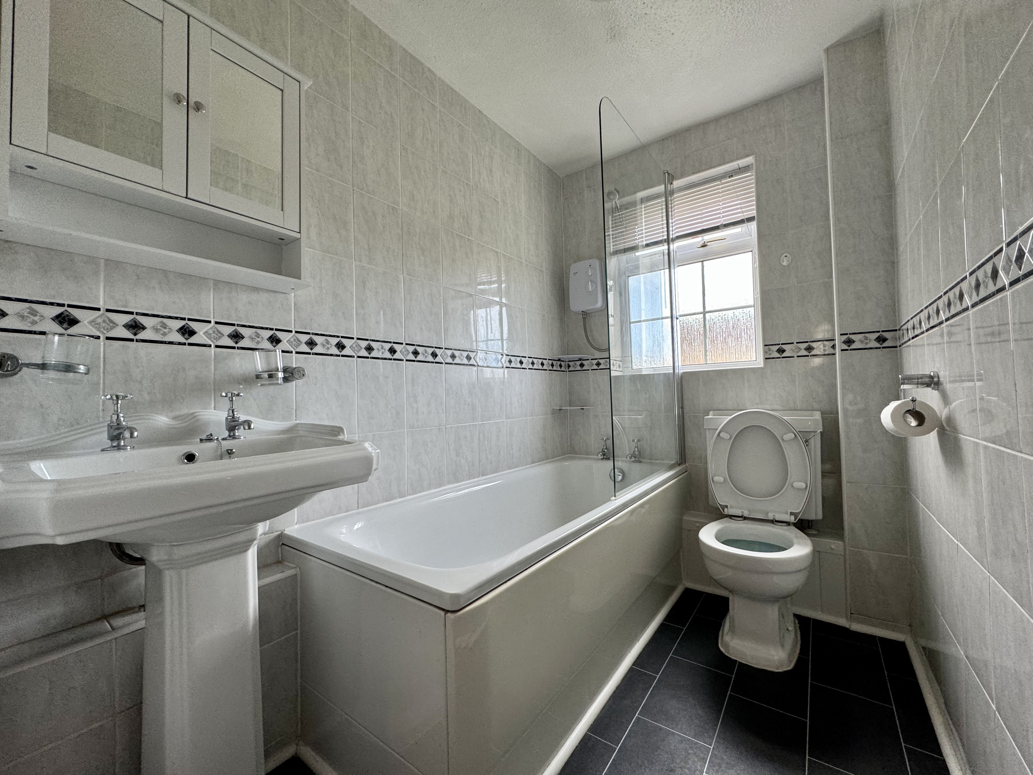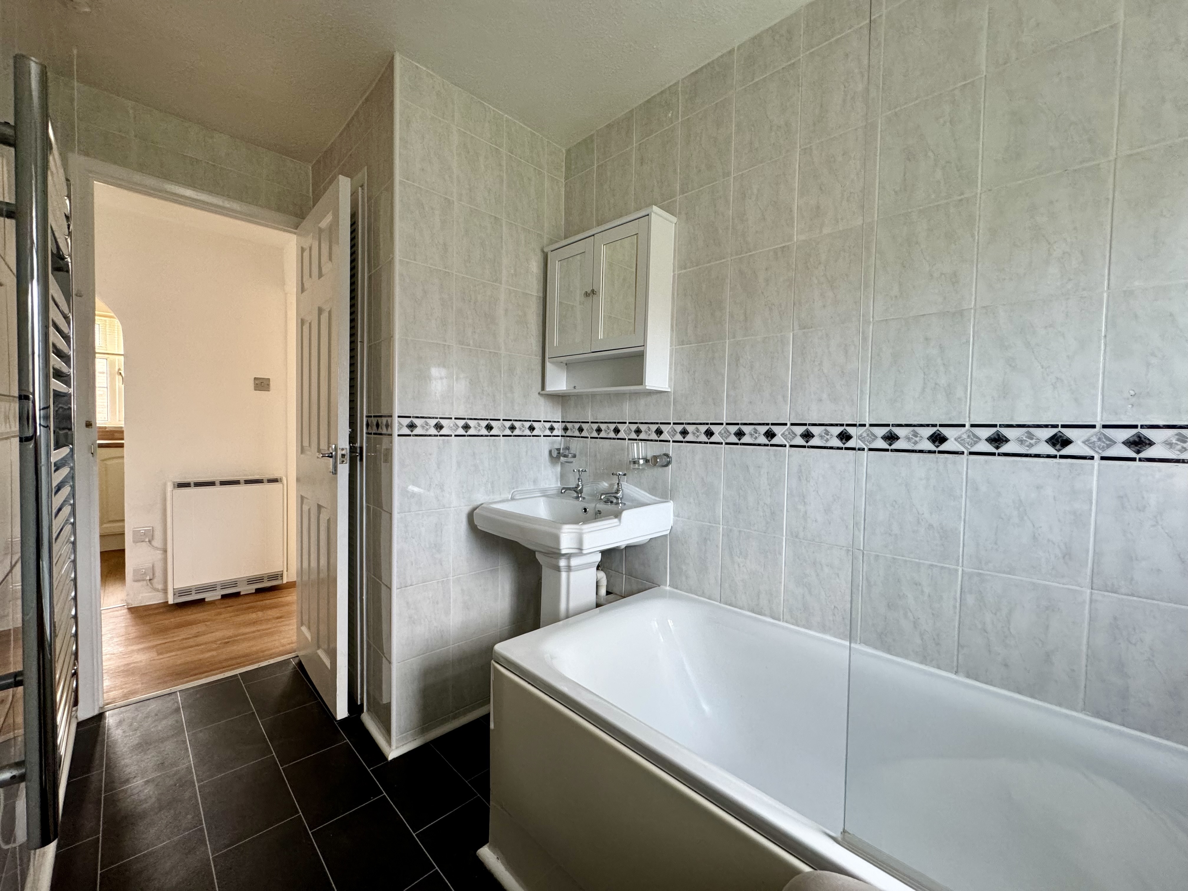 The living space is a good size and is light and bright thanks to a large double-glazed bay window looking out onto the garden space. The double bedroom offers ample space and comfort. The bathroom is equipped with both a bath and an electric shower above with shower screen, toilet and basin with mirrored bathroom cabinet and electric heated towel rail.