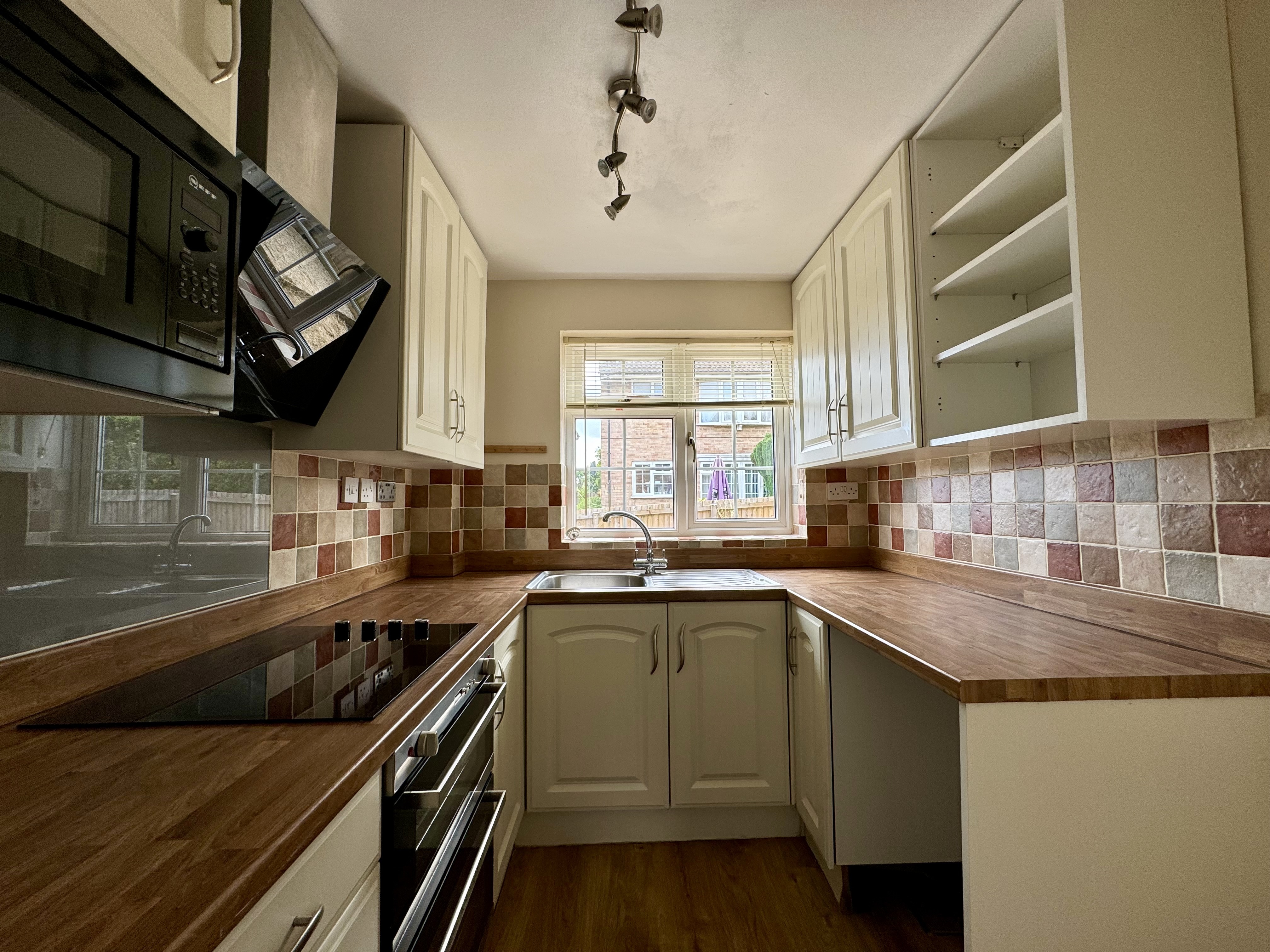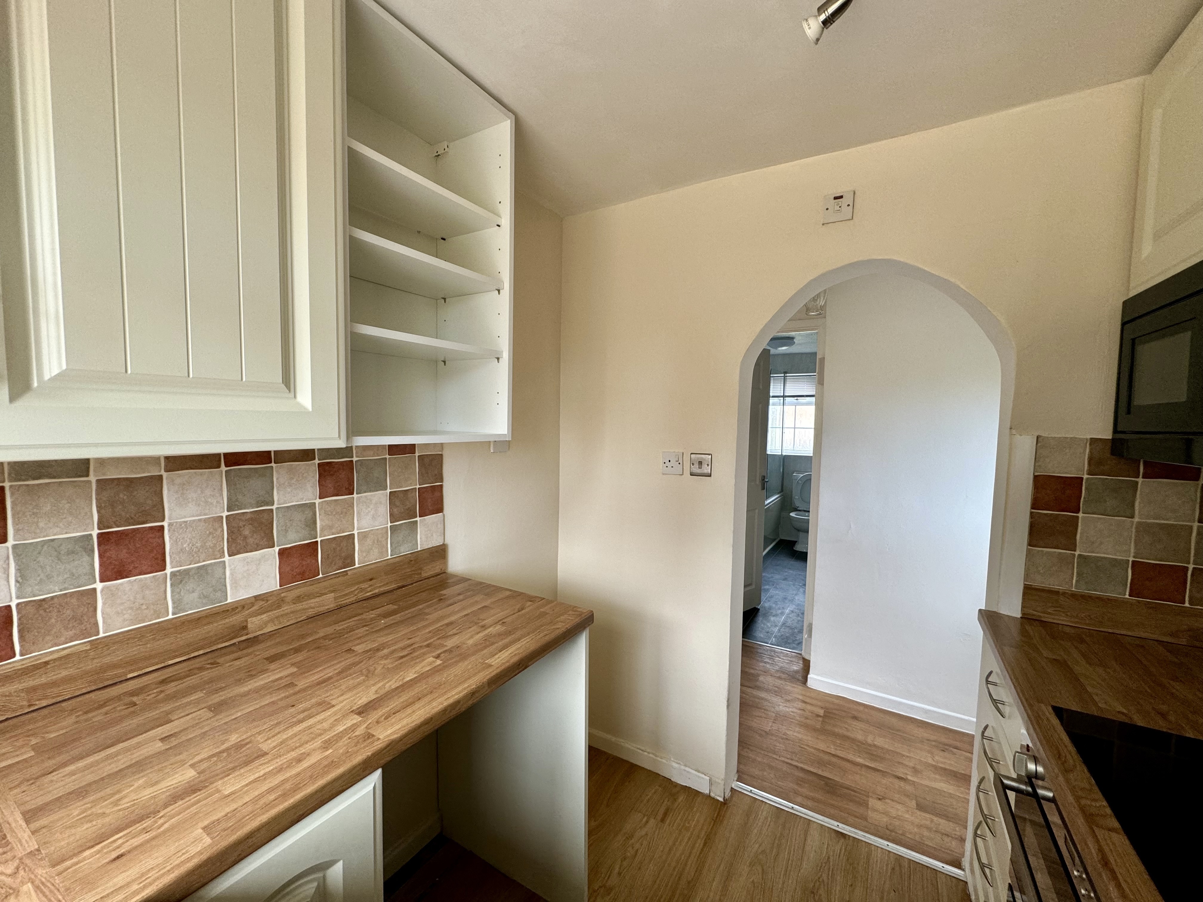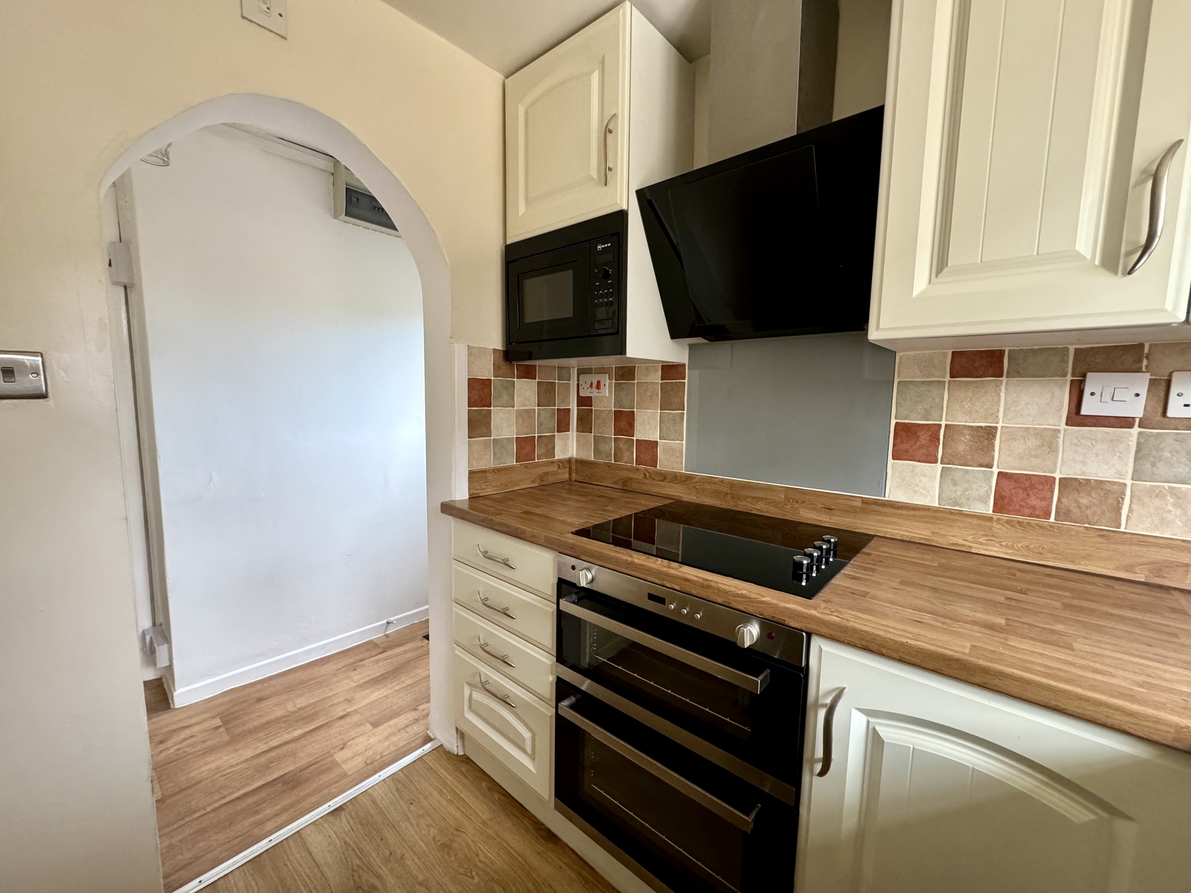 The property features an entrance hall leading to the kitchen, bathroom and lounge area. The kitchen is modern and well equipped with ample worktop and cupboard space and benefits from integrated appliances including electric oven with grill, electric hob, microwave and extractor hood. There is under-counter space for you to install your own free-standing washing machine and a dedicated space for you to put a fridge-freezer.