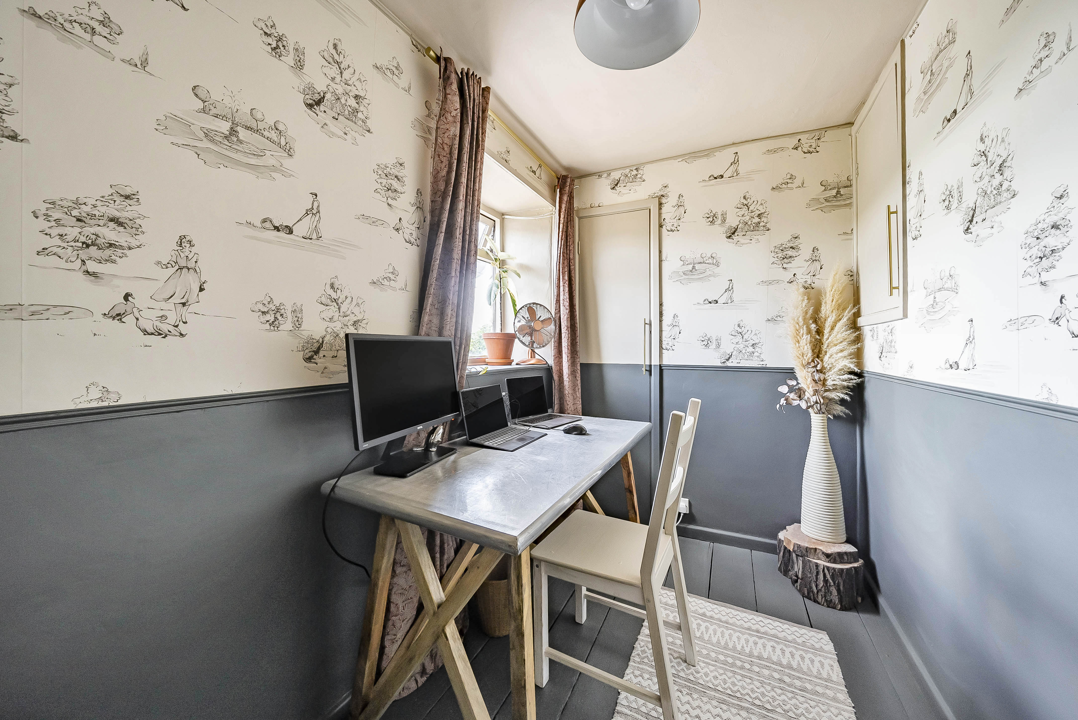 Upstairs, you will find the master bedroom and a versatile second bedroom, currently utilised as a home office, perfect for remote working or guest accommodation.