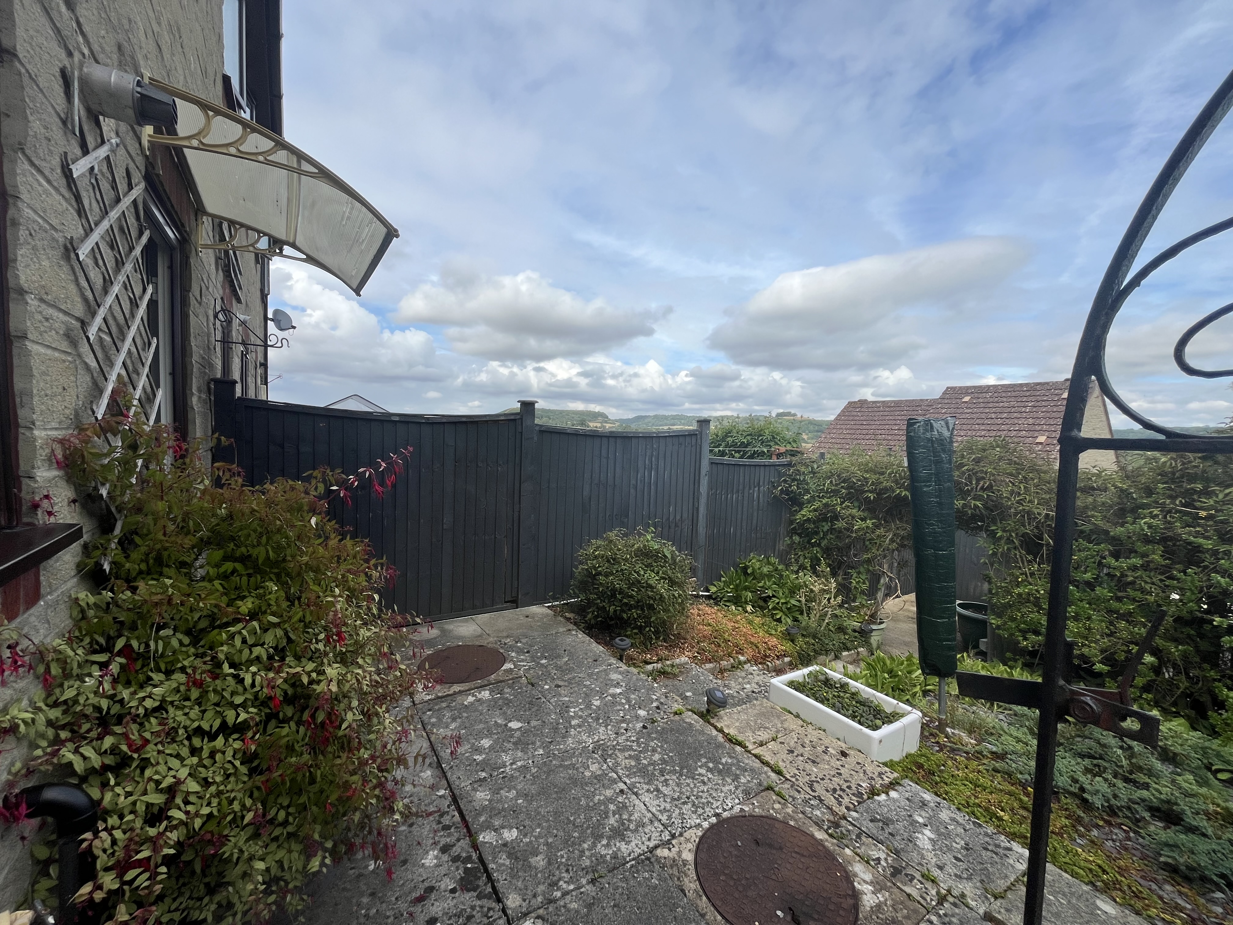On the first floor there are two bedrooms and a family bathroom with shower over the bath. Further benefits include double glazing, gas central heating and elevated views of the town and countryside surrounds from the rear garden.