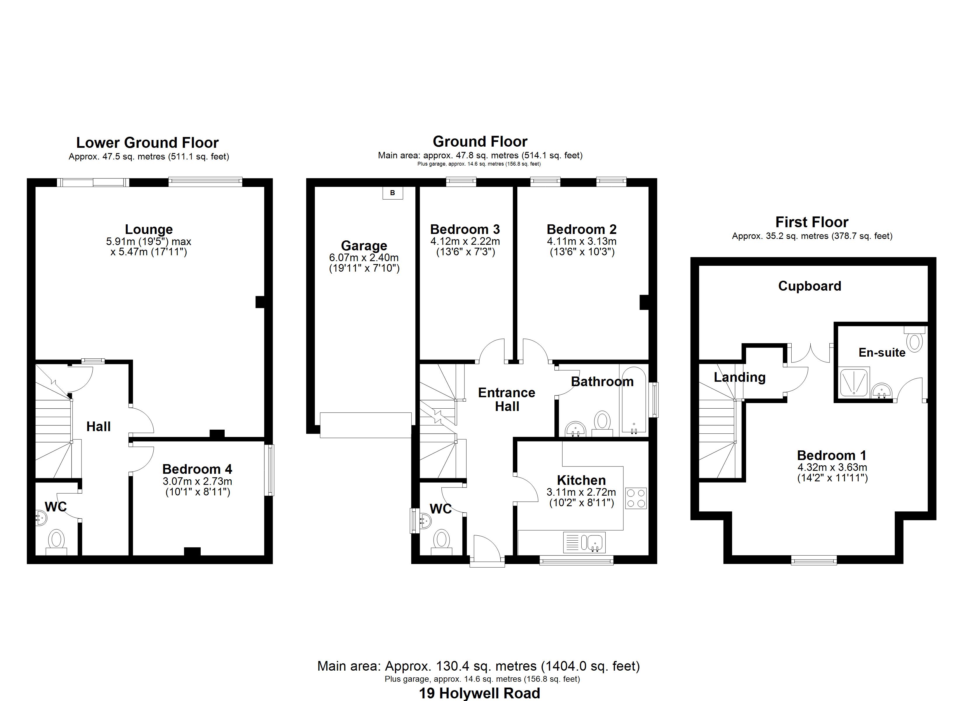 The fourth bedroom, another cloakroom and the lounge are downstairs on the lower ground floor and master bedroom with en-suite shower room are located upstairs on the first floor.